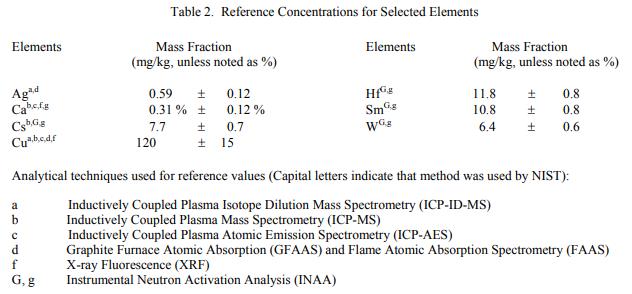 認(rèn)證值基于 NIST 和合作專家實(shí)驗(yàn)室 [1] 獲得的兩種或多種化學(xué)獨(dú)立分析技術(shù)的結(jié)果一致。表 1 提供了 22 種元素的濃度認(rèn)證值,以質(zhì)量分?jǐn)?shù)表示。