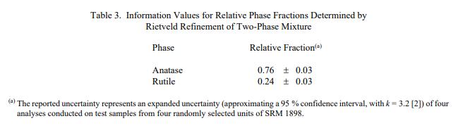 NIST 認證值是 NIST 對其準確性有最高置信度的值,因為所有已知或可疑的偏差來源都已調查或考慮在內 [1]。認證值基于在 NIST 進行的測量并由合格的合作實驗室驗證 [4]。每個值列出的不確定度是基于 95% 置信區間的擴展不確定度,根據 ISO/JCGM 指南 [2,3] 中的方法計算。